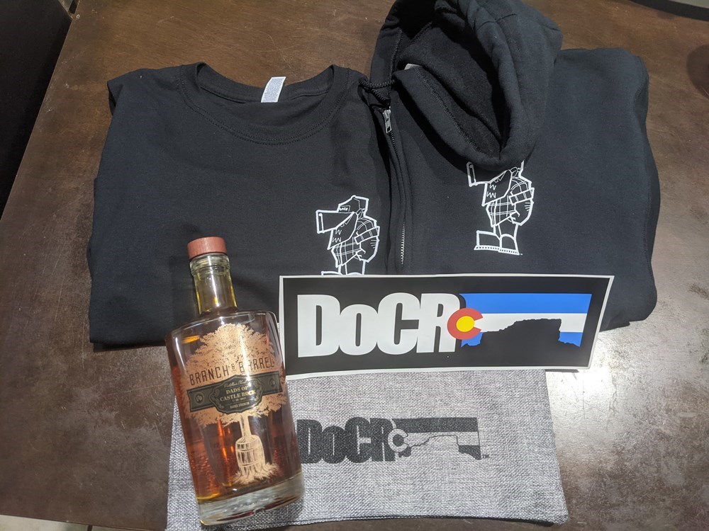 DOCR Merch Basket Including: DOCR Bourbon DOCR Zip Up Sweater DOCR Sticker DOCR Shirt Retail Value: $150