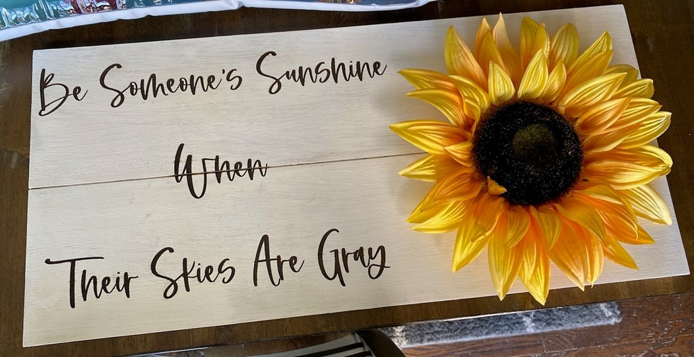 Homemade sign. "Be Someone's Sunshine When Their Skies Are Gray" Say thanks to your wife for letting you golf! Retail value: $75.